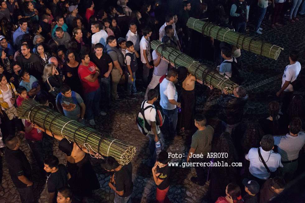 Esta peregrinación por las empedradas calles de Taxco, nuevamente participaron grupos de penitentes, agachados, encorvados, la cofradía de apóstoles y de manera austera, hacen su primera aparición los encruzados cargando los pesados rollos de espinas de Zarzamora y los penitentes flagelantes cargando una pesada cruz de madera, la cruz de san Andrés en brazos y dándose latigazos con una ’disciplina’ o un instrumento de tortura hecho de clavos de acero y descalzos.